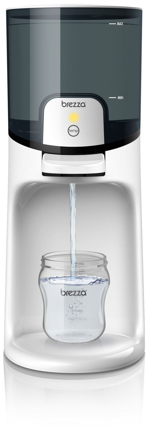 The Baby Brezza sterilizer boils water to produce steam (212°F / 100°C) to naturally sterilize your baby products.