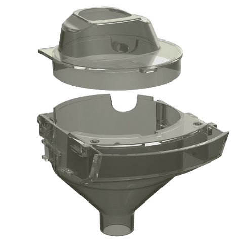 3. Empty the powder container, wash all powder container parts, dry thoroughly, reassemble, & reinstall on the base.